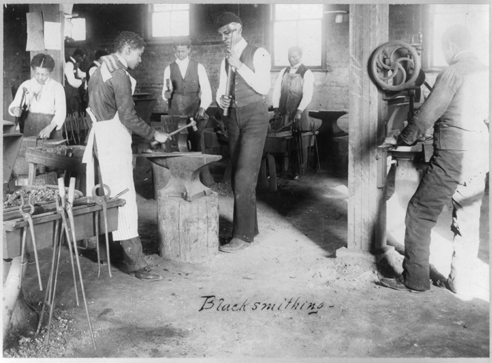 Learning the craft of blacksmithing in an 1899 A&T class