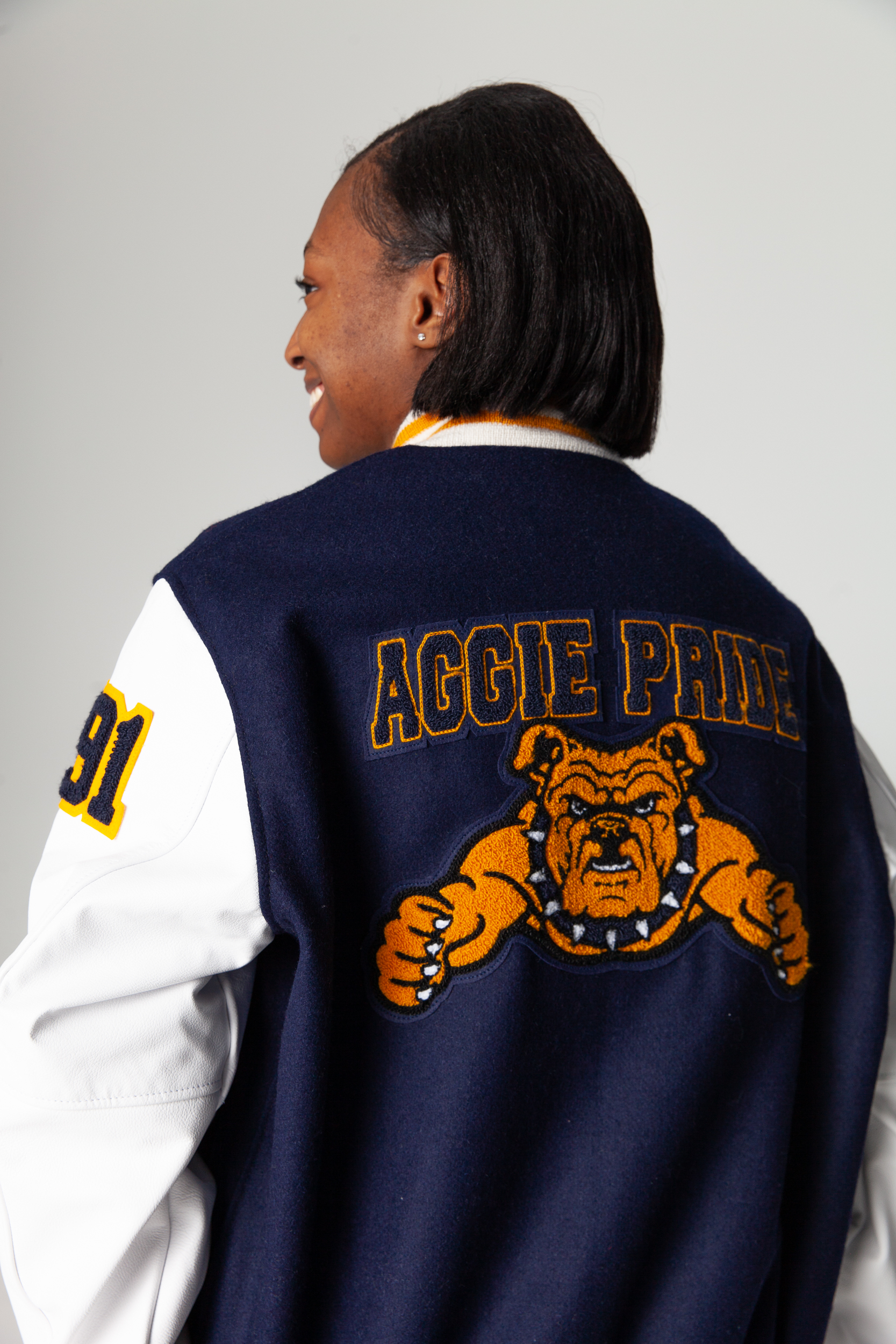 The apparel includes Champion sweats and long-sleeve shirts featuring original graphics by students. For N.C. A&T, there are six pieces including a premium letterman jacket produced by Ebbets Field Flannel representing the students’ interpretations of the collegiate staple.