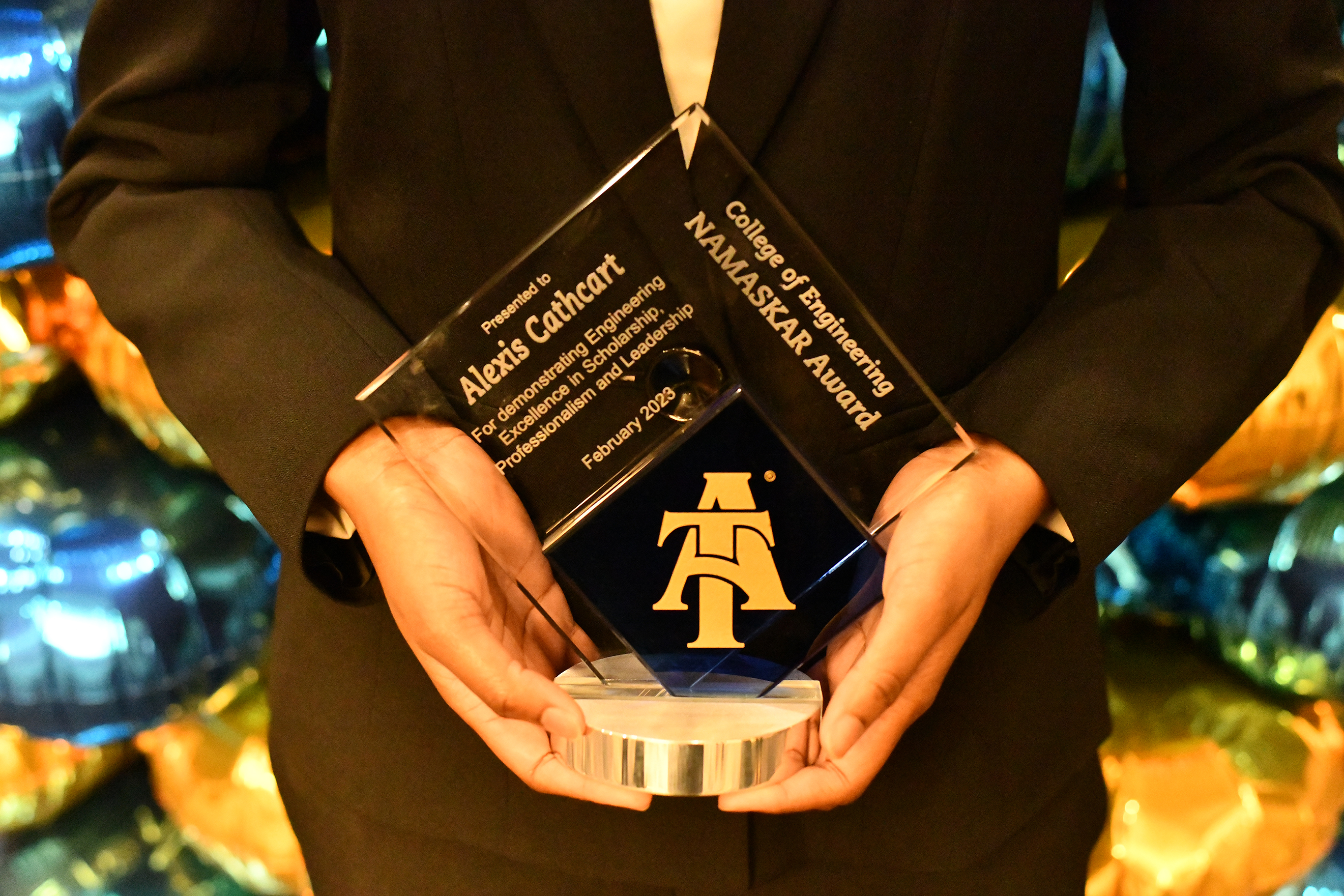 During the celebration of National Engineers Week at N.C. A&T’s College of Engineering (COE), Cathcart was selected as the 2023 Namaskar winner for her leadership, professionalism and level of academic success. COE awards this distinction annually to a graduating senior, highlighting the importance of excellence in engineering and to encourage students to strive for excellence in their endeavors.