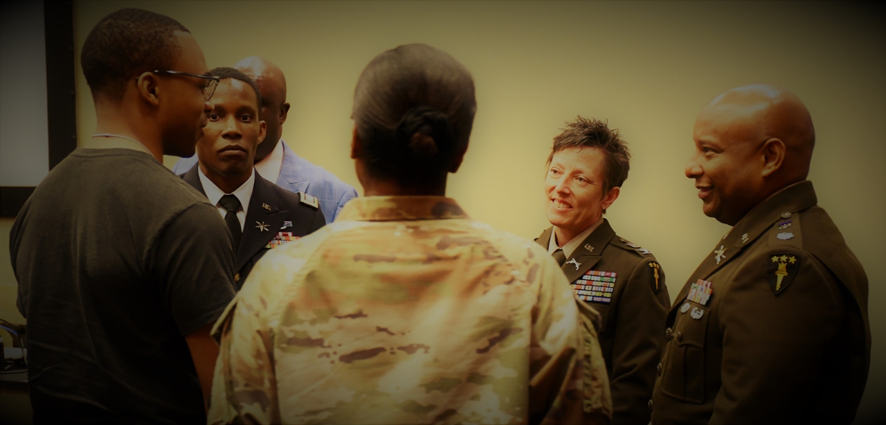 EAST GREENSBORO, N.C. (April 13, 2023) – The Department of History and Political Science at North Carolina Agricultural and Technical State University hosted visiting students and faculty of the U.S. Army War College’s Eisenhower Series College Program (ESCP) on campus Wednesday, April 12. The highly selective program encourages its students, who are on a trajectory to become the Army’s most senior leaders and advisors, to engage with two strategic issues related to national security over the course of a 10-month term, present these insights to communities across the nation and learn civilians’ perspectives of the military and national security in efforts to increase understanding.