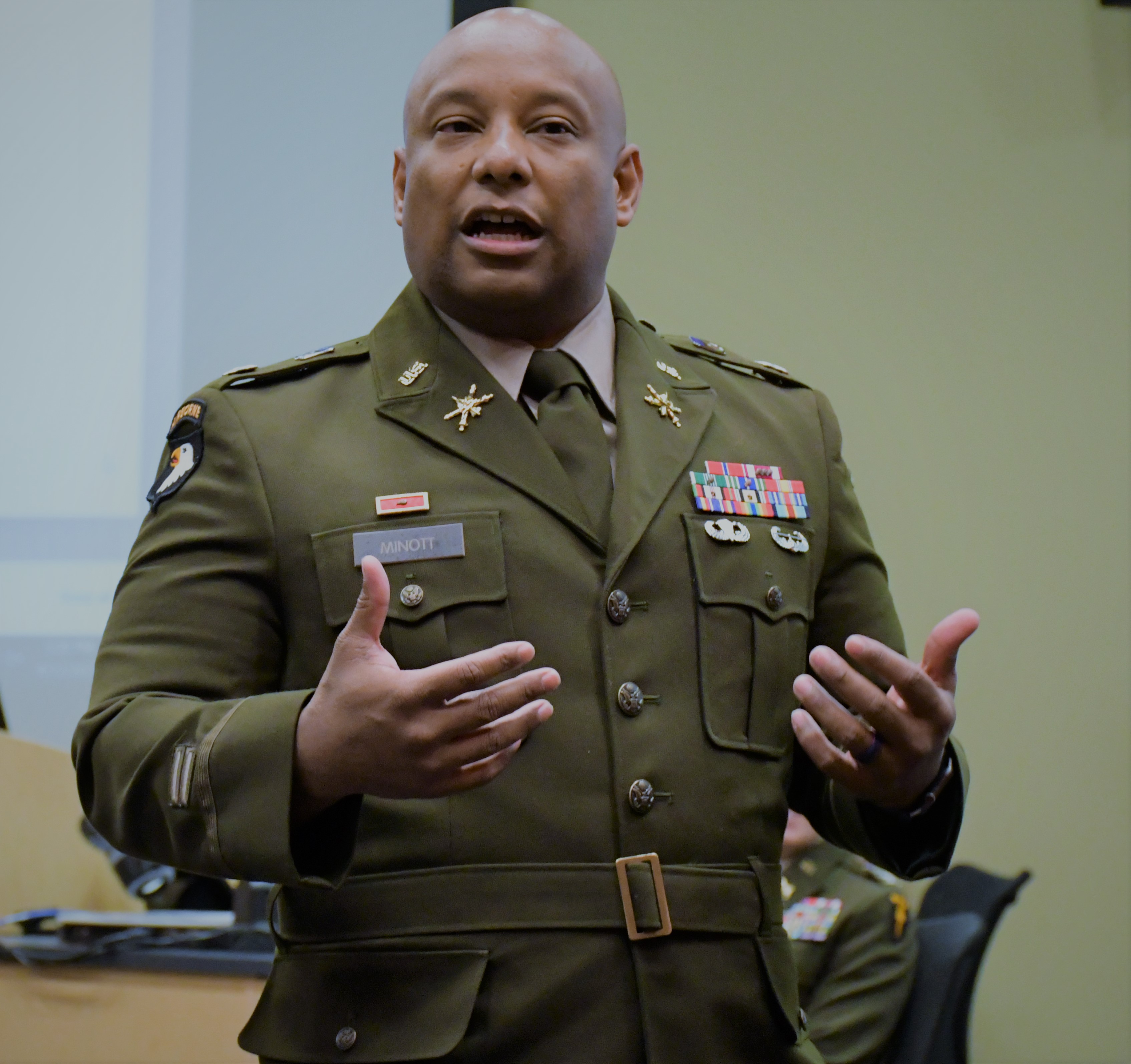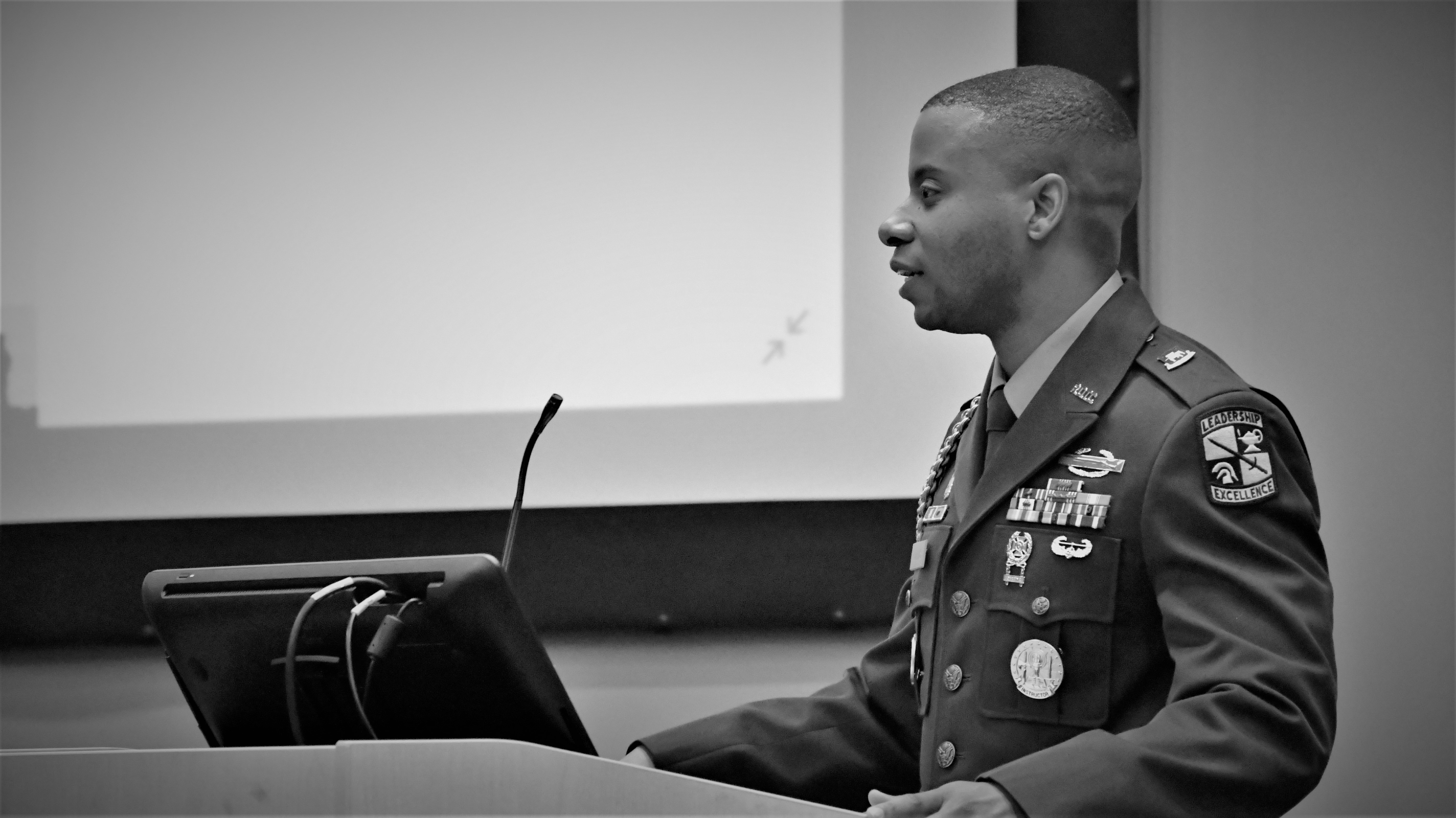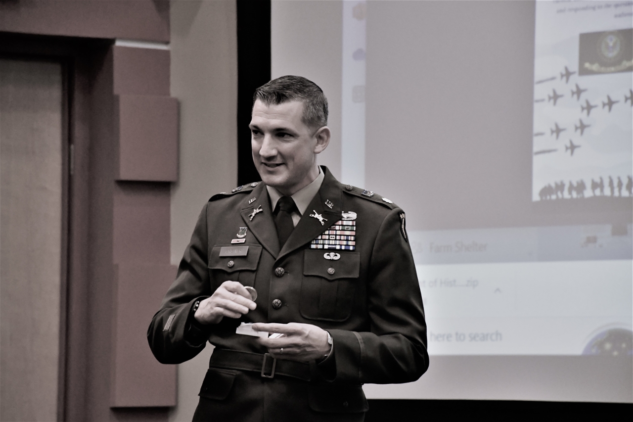 Minott discussed his topic, “Can an Individualistic Society Produce Service-minded Citizens?” and noted that he often asks soldiers why they joined the Army and what keeps them motivated. He realized that educational and professional development opportunities, health care access and other “personal benefit attributes” were strong motivational factors, instead of the opportunity to serve their country.