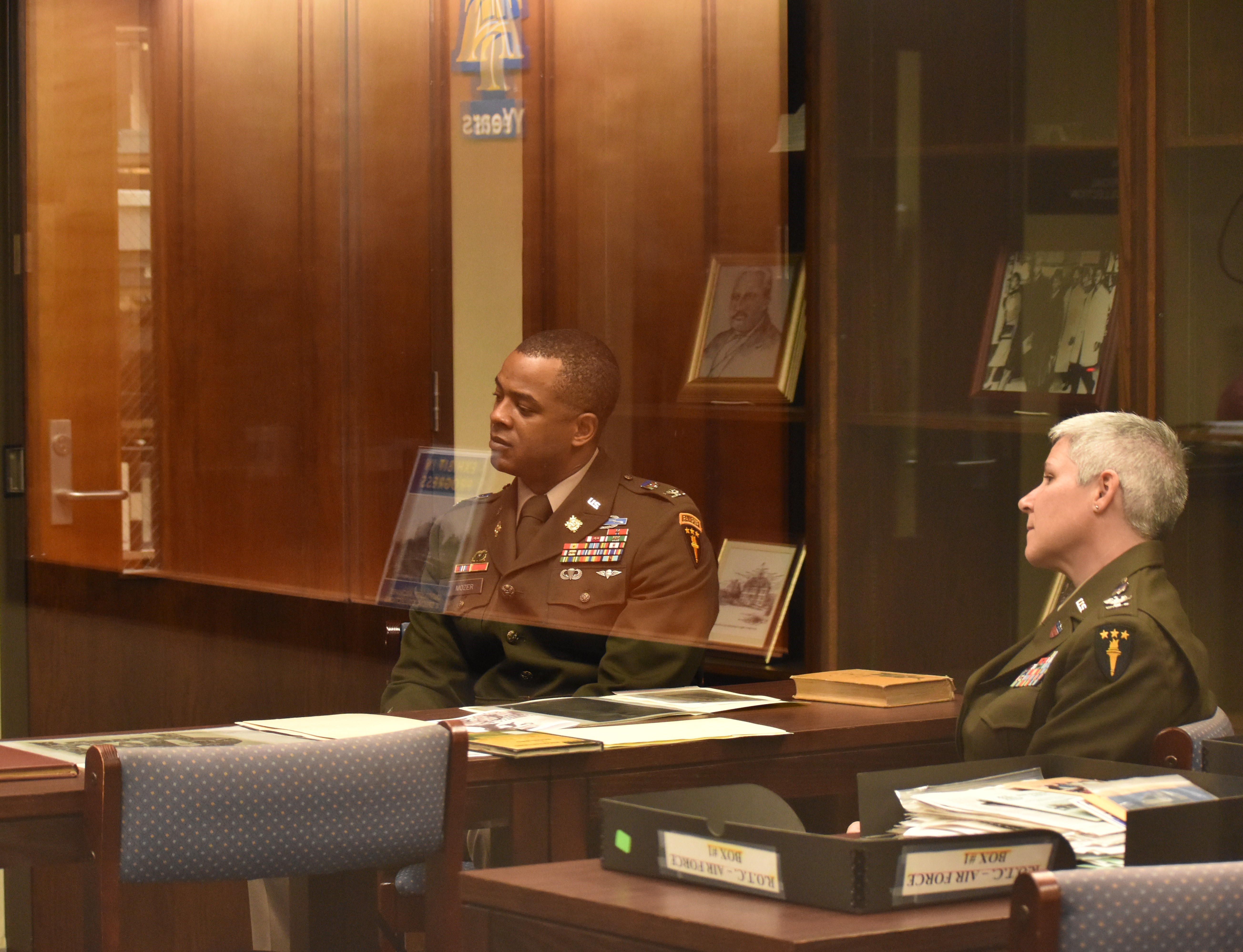 Stewart discussed and showcased many artifacts and connections A&T has with military history. He highlighted a $40,000 grant the Archives received to digitize 160 films, a few of which are from the World War II era.