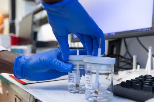 The challenge with using sunlight as the source is reproducibility. If it happens to be a cloudy day when the sunlight’s intensity is different, researchers may not get the same result since the amount of hydrogen produced depends on the intensity of the light. To address this, Bastakoti’s team uses a solar simulator in the laboratory. The system works when light falls on the materials, giving energy to the water molecules. When the water molecules dissociate, researchers can measure how much hydrogen is produced from the water.